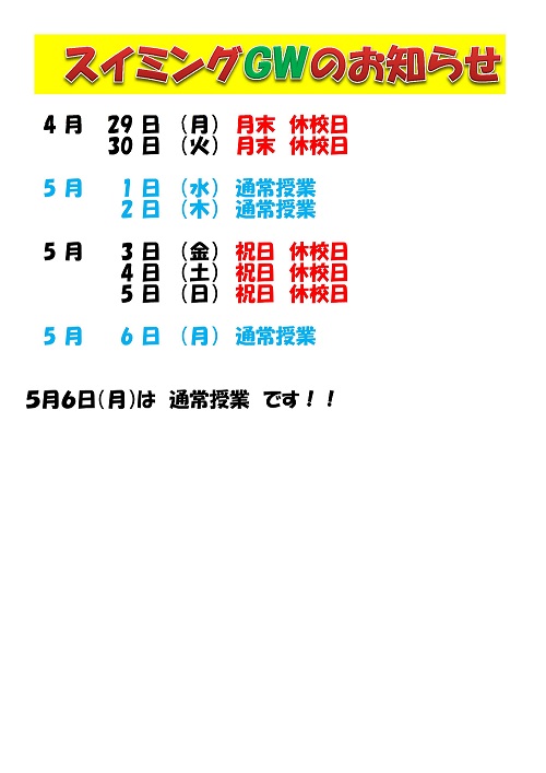 スイミング GW のお知らせ
