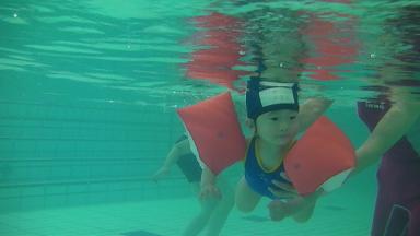 いつもより少しプールを広く使って、楽しく遊びました♪