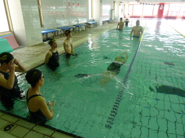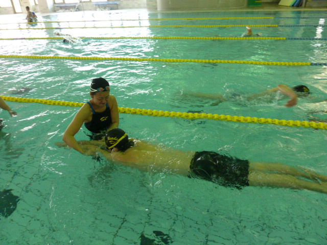 イトマン三田校では、定期的に水中で泳法勉強会、指導法の統一を行っています。
