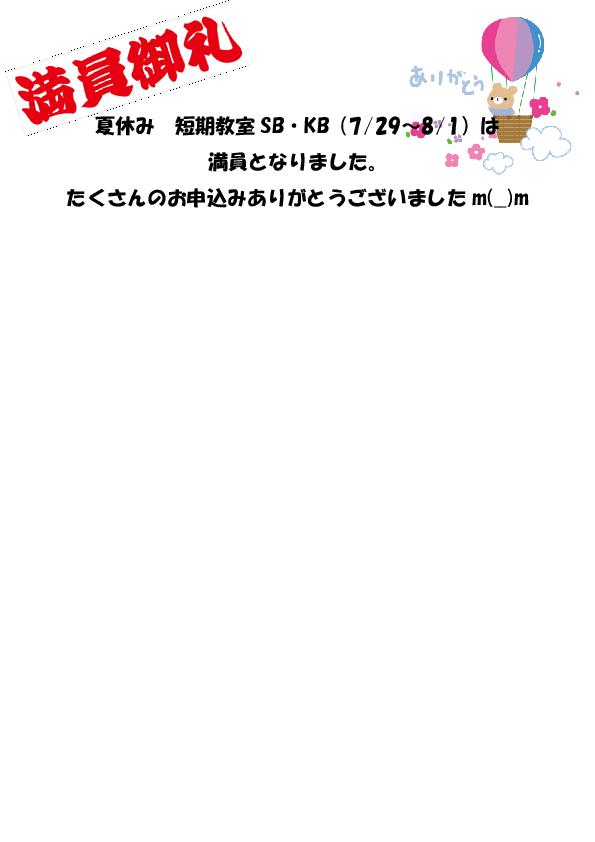 夏休み 短期教室SB・KBは満員となりました