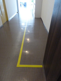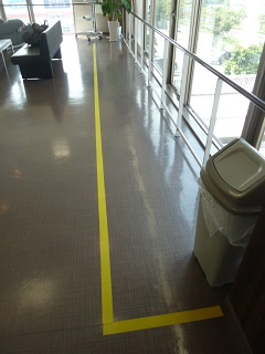 黄色いテープを貼っておりますのでそこにお並び下さい。