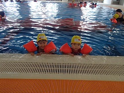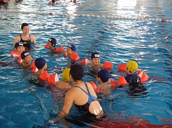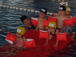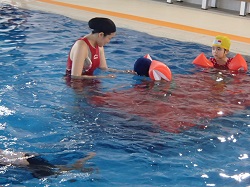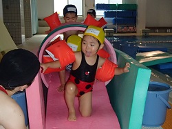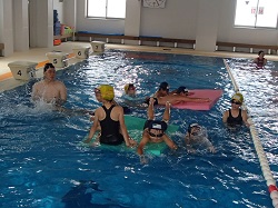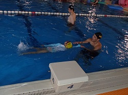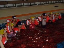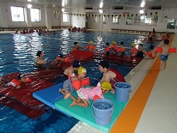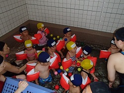 水中・プールサイド・おもちゃを使って “楽しく” 授業をしました!!