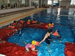 ヘルパークラスでは、 水慣れ ・ 顔つけ ・ 呼吸動作 ・ 浮く
