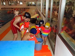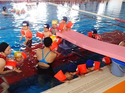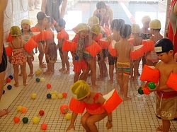 幼児クラスでは、 少しでもお水に慣れてもらうように