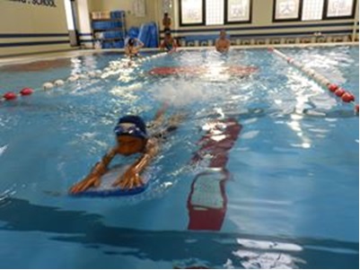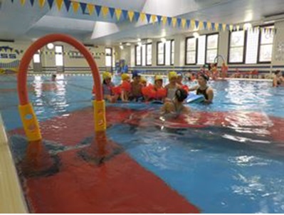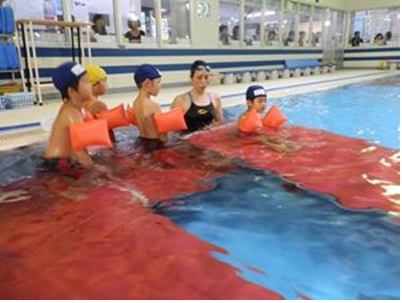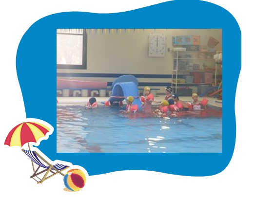 ヘルパークラスのお友達はみんなでお船に乗って広いプールをお散歩したり、
