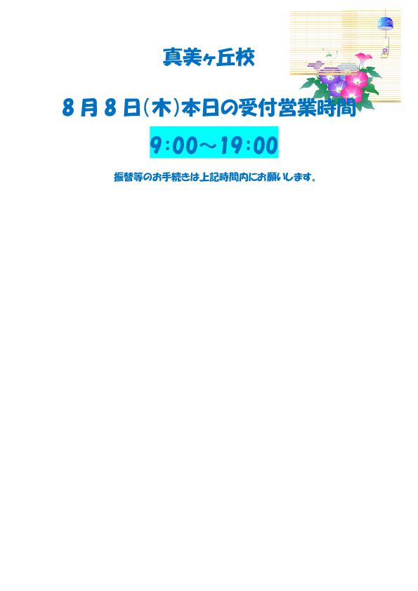 8/8 会員様へ 本日の受付営業時間のお知らせ