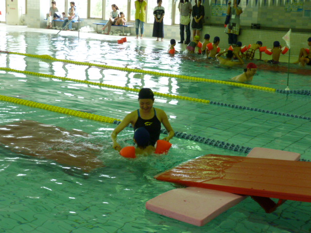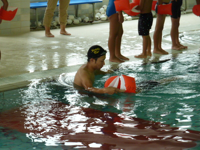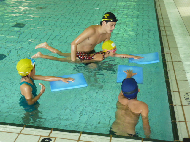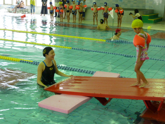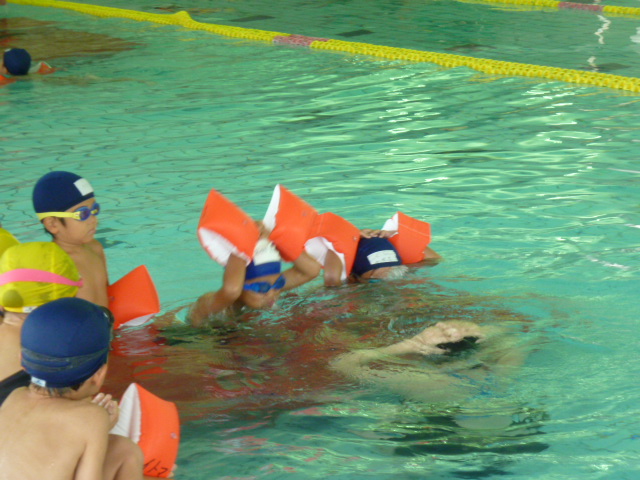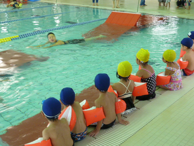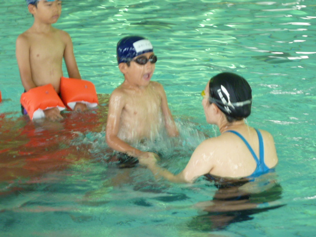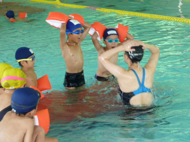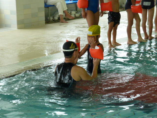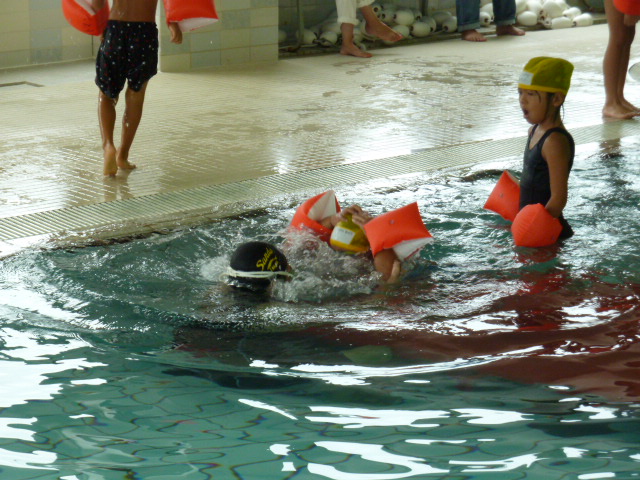 屈伸潜りができたら、ひとりずつ水中ジャンプ![]()