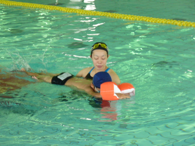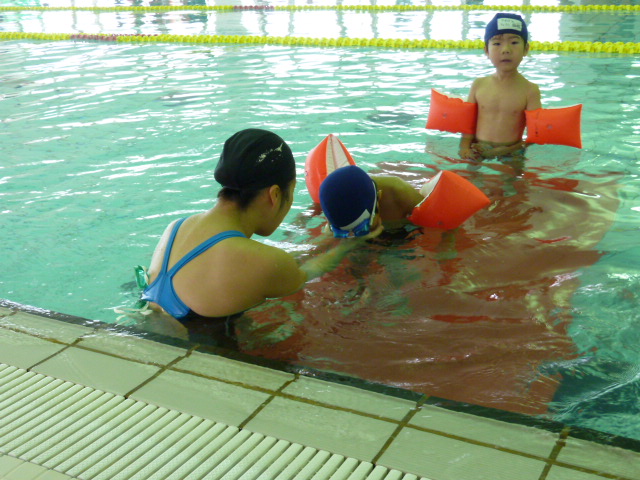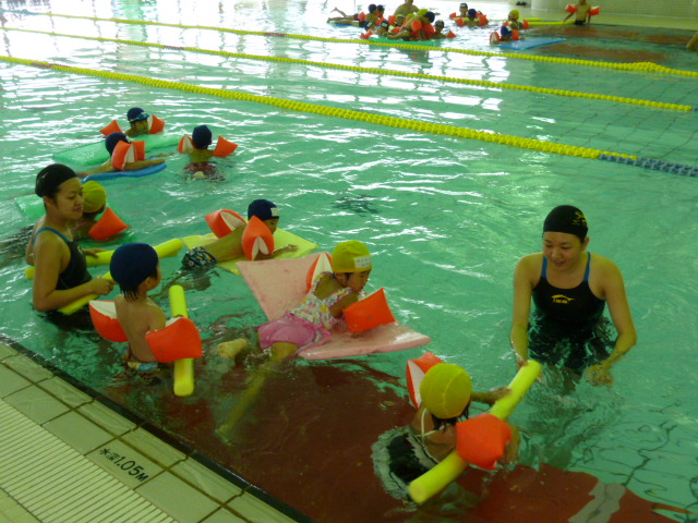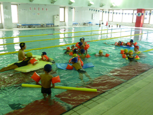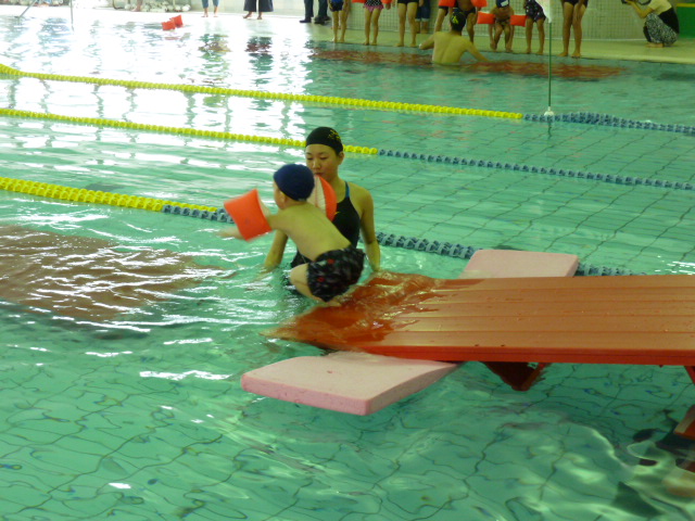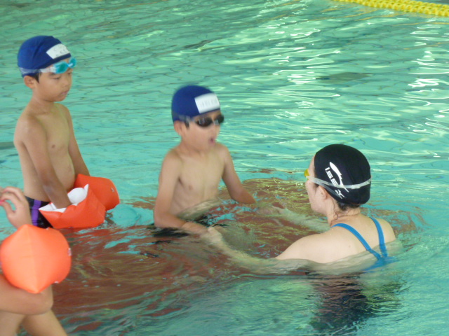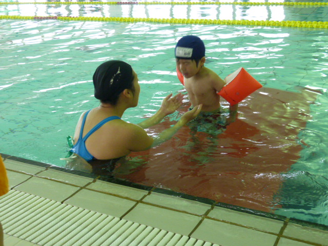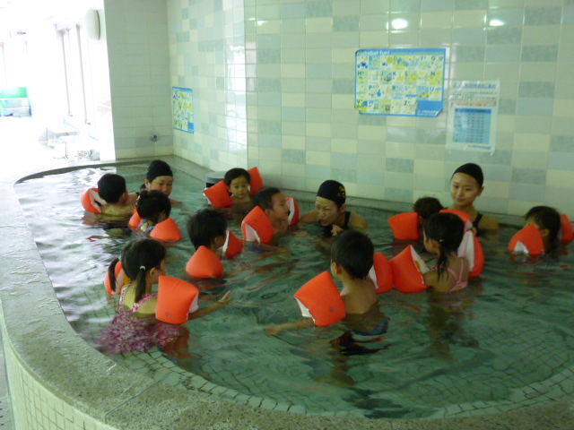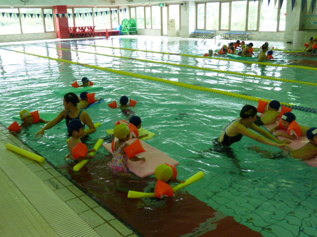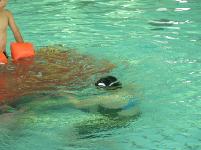 屈伸潜りができたら、ひとりずつ水中ジャンプ![]()