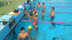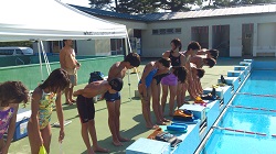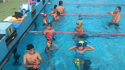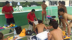 コーチもプールに浸かったりしながら、練習しました。