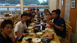 食事では堀井先生から、たくさん食べることについて指導してくれました。