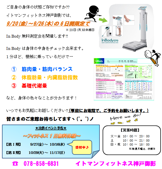 【フィットネス】InBody無料測定会を開催しますヽ(^o^)丿