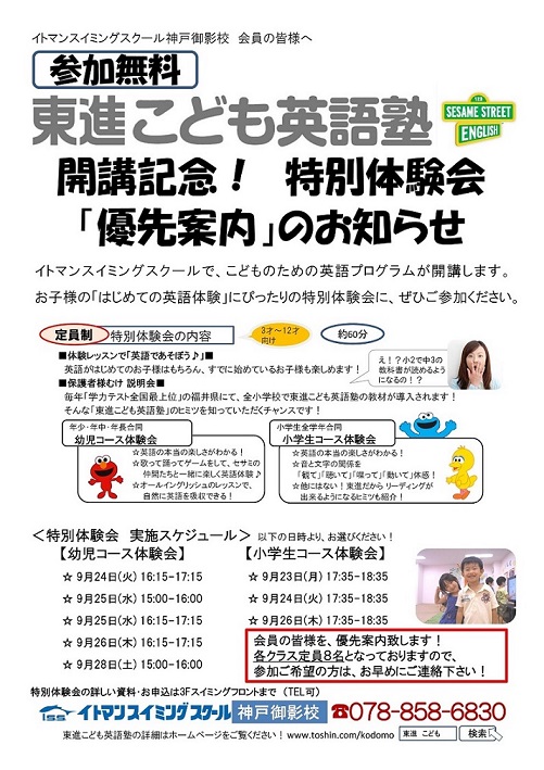 9月23日(月)より始まる無料特別体験会に、会員の皆様を優先案内致します。