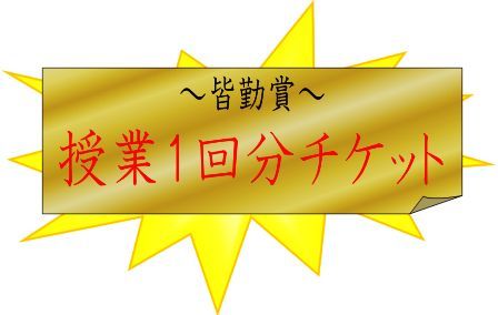 ・休まず通えたお子様全員に、授業1回分のチケットを贈呈します。