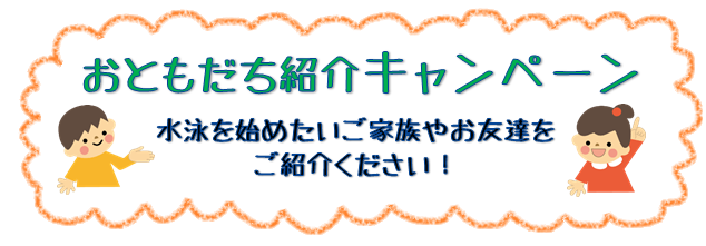 みなさまのご家族やお友達に、水泳を始めたい方がいらっしゃいましたら