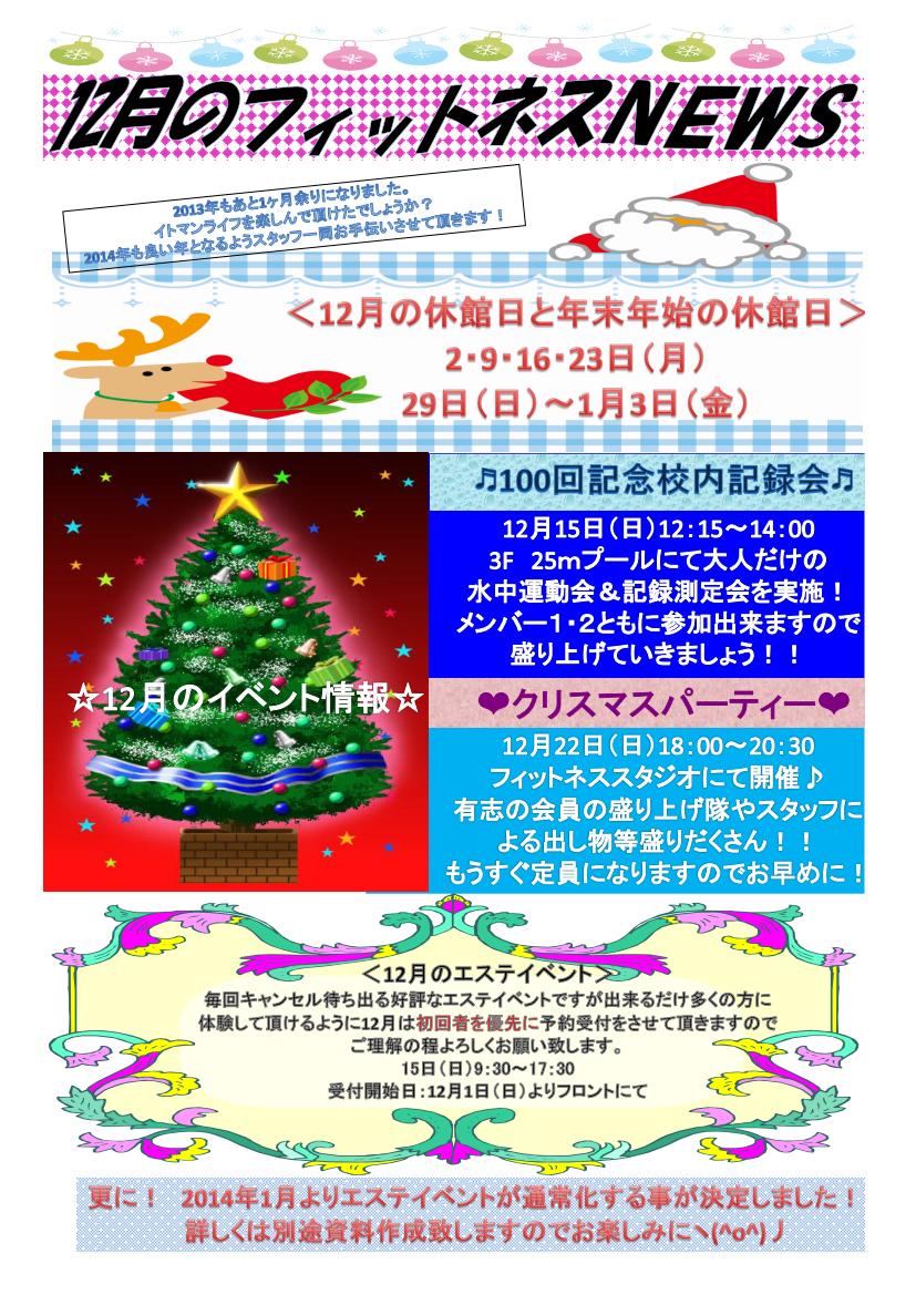 【フィットネス】フィットネスニュース12月号&各種お知らせ★