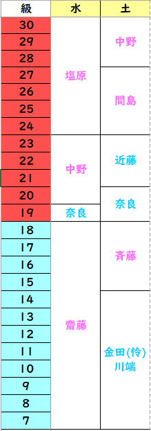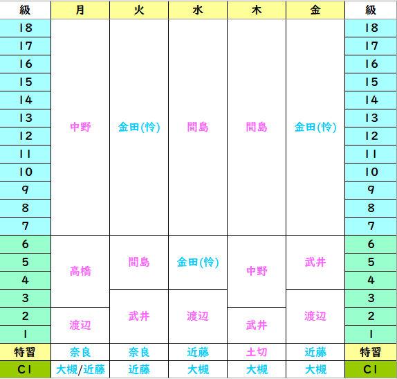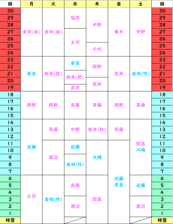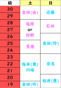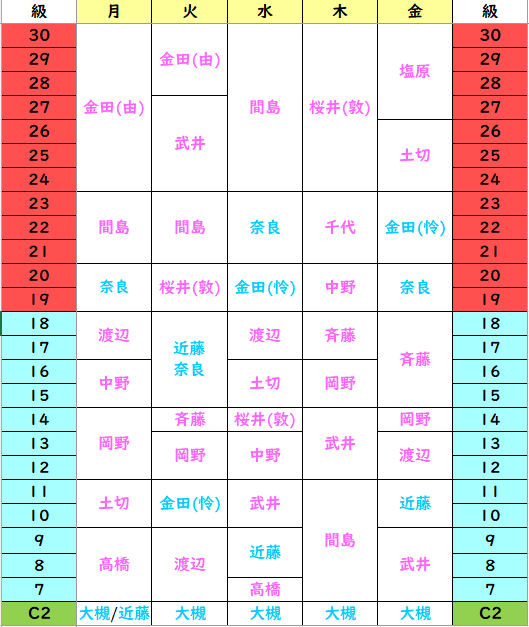 ※級をクリックすると、担当表をご覧頂けます。