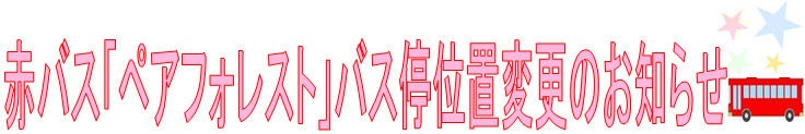 現在、赤バス「ペアフォレスト」より乗車されている会員の方は、皆様新しいバス停位置で乗降車していただくこととなりますので、ご協力お願い致します。
