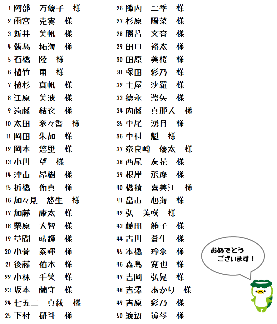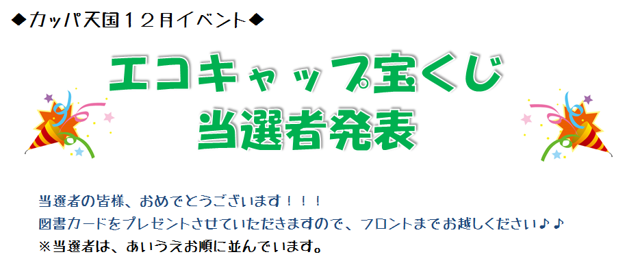 かっぱ天国12月イベント エコキャップ宝くじ当選者発表!