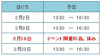 ※場合によっては、お休みまたは時間変更の場合がごさいます。