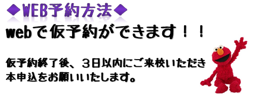 ご予約後、3日以内にご来校いただき、お手続きをお願いいたします。