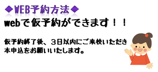 ご予約後、3日以内にご来校いただき、お手続きをお願いいたします。