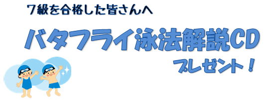 ■CD引換方法■CD引換券は、7級合格された時点で担当コーチからお渡しいたします。CD引換券に名前をご記入の上、フロントまでお持ちください。バタフライCDをプレゼントさせていただきます。ご不明な点がございましたら、フロントまでお問い合わせください。
