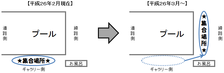 3月よりプールサイドでの体操待機場所を混雑緩和の為、