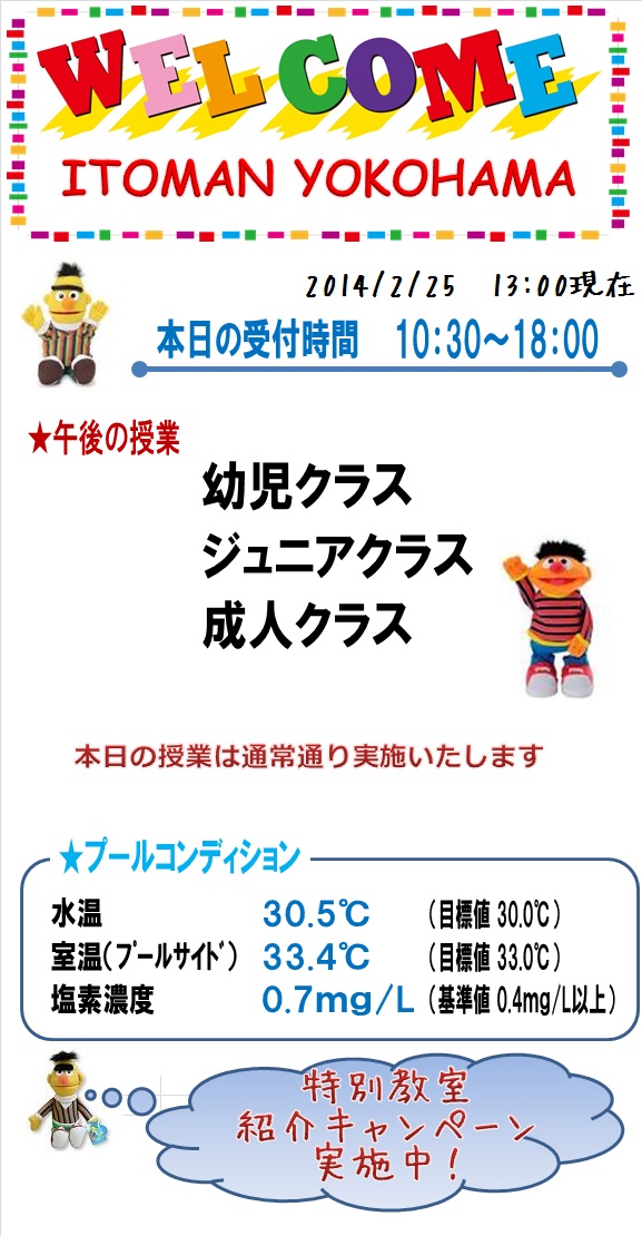 本日の営業情報【2014.2.25 PM】
