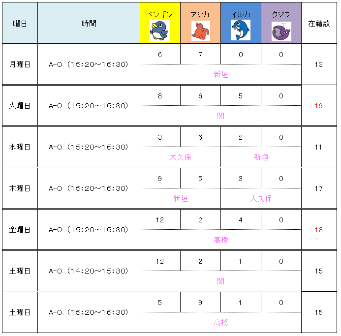 ◆幼児クラス 3月担当表・在籍人数表◆