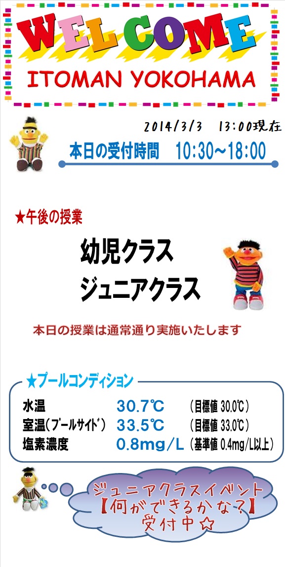 本日の営業情報【2014.3.3 PM】