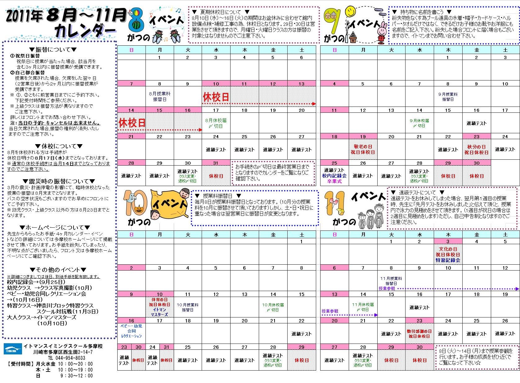 あ | あ | 授業参観 11月授業料 振替日 |
