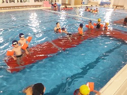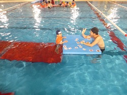 幼児クラスでは、 水になれる ことを目標にプール内、上で楽しく遊びながら