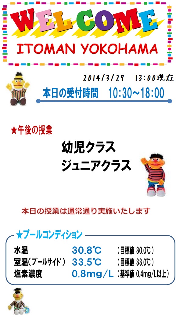 本日の営業情報【2014.3.27 PM】