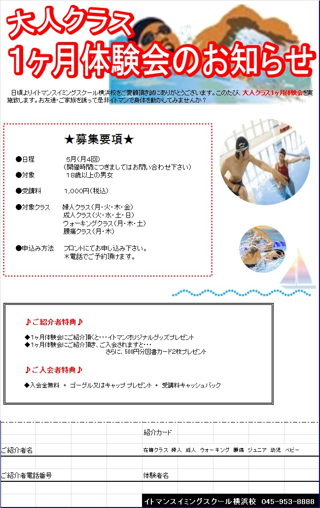 水中ウォーキングの楽しさ、泳ぐ楽しさをイトマンで体験してみませんか?