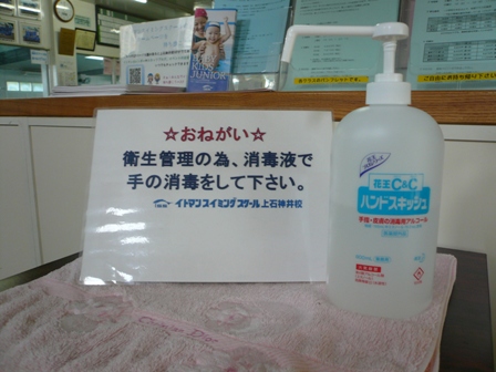 上石神井校では、くつ箱前に消毒液を置いています☆☆