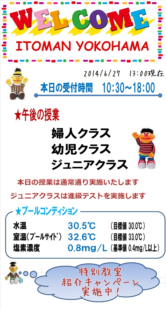 本日の営業情報【2014.6.27 PM】