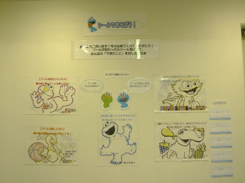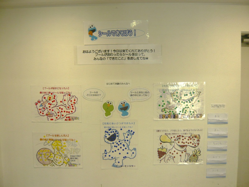 みんなが泳いでみてできたことを、シール遊びで探ってみました!