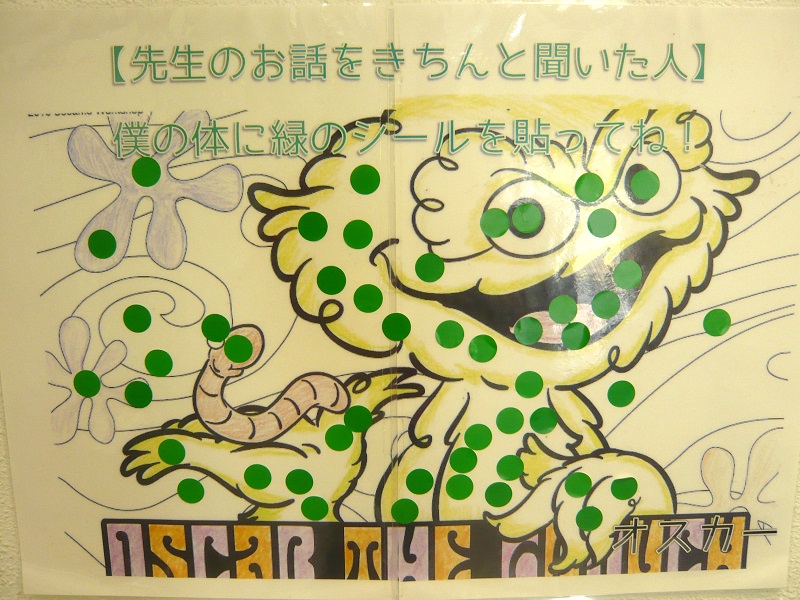 たくさんシールがありますね! イトマンでできたことがいっぱい あったみたいで先生たちもうれしい です★ それにしてもどのキャラクターの 目にもシールが・・・ 目のところに貼るのも楽しい みたいですね(笑) |