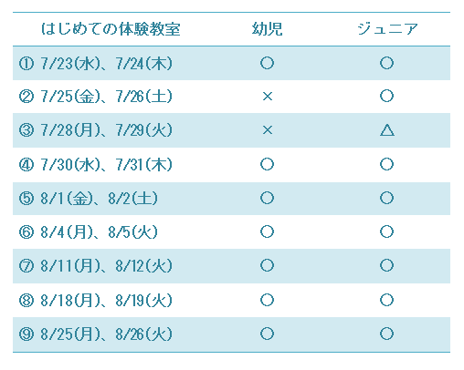 夏のはじめて体験教室、ご好評につき定員に達するクラスがでてきました!