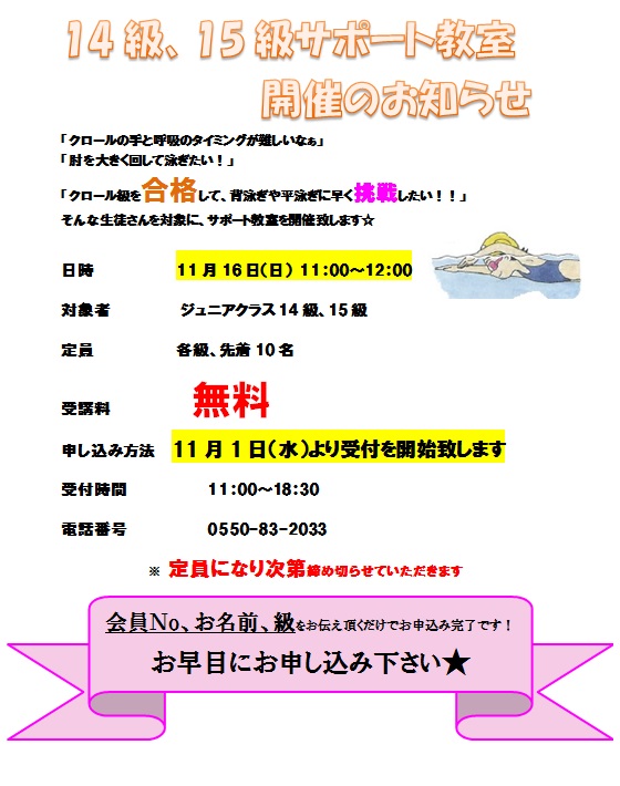 14.15級サポート教室 申し込み状況 11/15