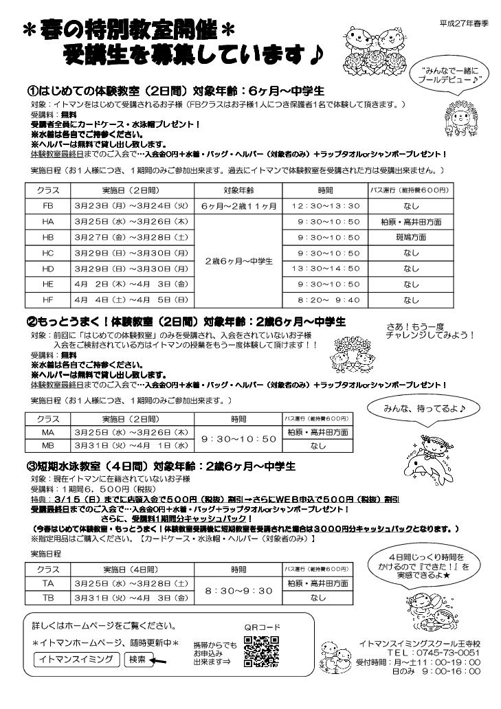 *春の特別教室 受講生募集中*