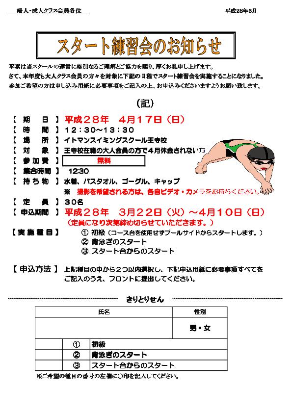 大人クラス☆スタート練習会のお知らせ☆