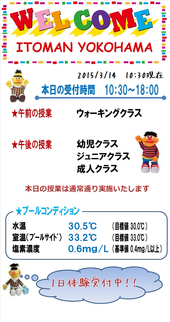 本日の営業情報【2015.3.14】