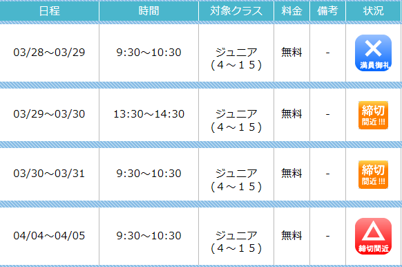 定員間近の期間もございますので、お申込みご希望の方はお早めにお申込みください