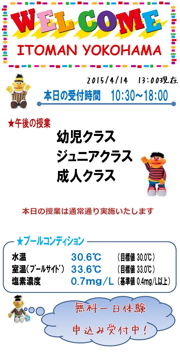 本日の営業情報【2015.4.14 PM】