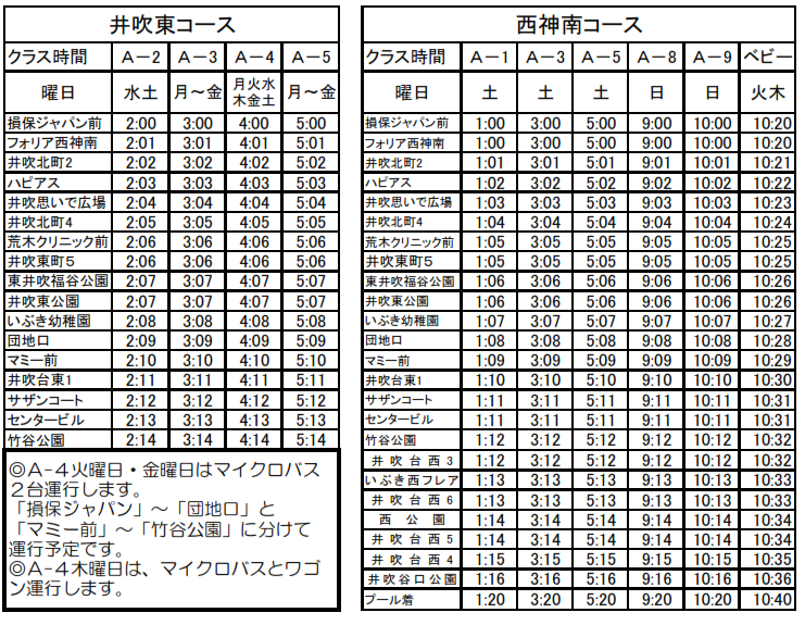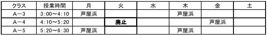 ◆火曜日のA−4クラスの運行を廃止します。