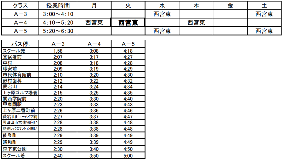 この度、西宮校では2012年3月より、バスの運行を一部変更いたします。