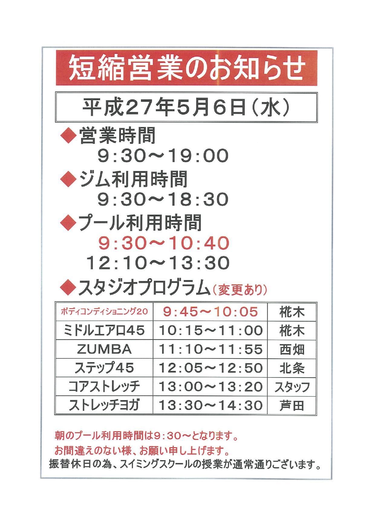 プール時間・スタジオプログラムに変更がございますので、ご了承ください。