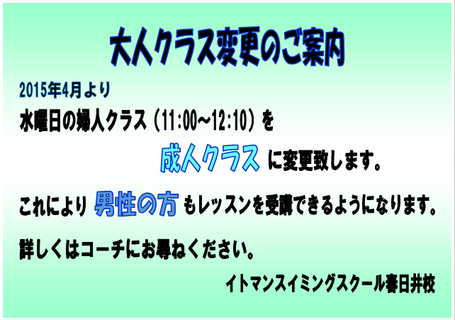成人クラスの会員様へ