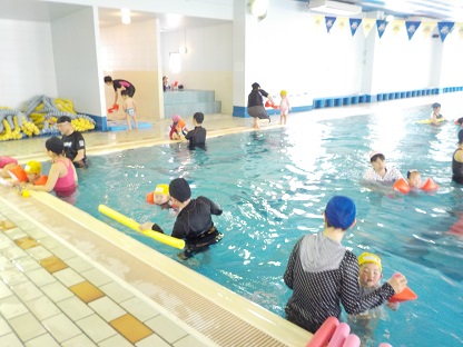 全体レッスンでみんなで仲良くプールで遊びました